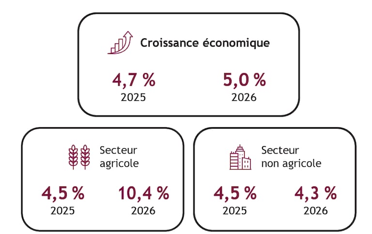 Ces facteurs combinés renforcent les revenus du monde rural et soutiennent la consommation intérieure, amplifiant ainsi l’effet d’entraînement de la reprise agricole sur l’ensemble de l’économie. Ils mettent également en lumière la forte sensibilité de la croissance nationale aux conditions climatiques, comme en témoigne la trajectoire économique observée entre 2022 et 2026.